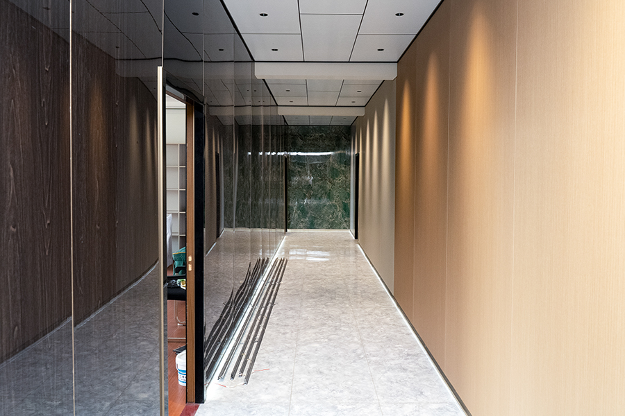مجموعة من التصميم والبحث والتطوير والإنتاج والمبيعات والتركيب في إحدى المؤسسات المهنية الجديدة للمواد الزخرفية.