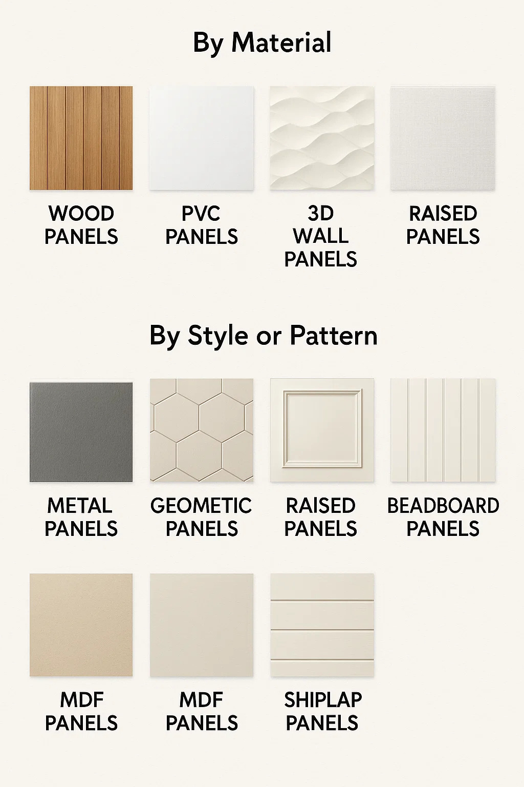 --ألواح الحائط المزخرفة: مصطلح عام يسلط الضوء على اللوحات غير المسطحة، مما يضيف لمسة لمسية إلى سطح الجدار.