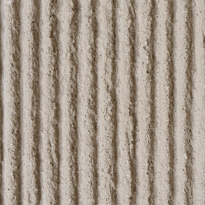 تتميز لوحة الحائط الحجرية المرنة ذات الخطوط المستديرة بمزيج فريد من نسيج الحجر القوي والأخاديد الرأسية الدقيقة، مما يوفر الأصالة الطبيعية والنظام الحديث. يستحضر سطحه الخشن الجمال الخام للصخور، بينما تخلق الخطوط المستديرة المستمرة إحساسًا بالإيقاع والتطور المعماري.