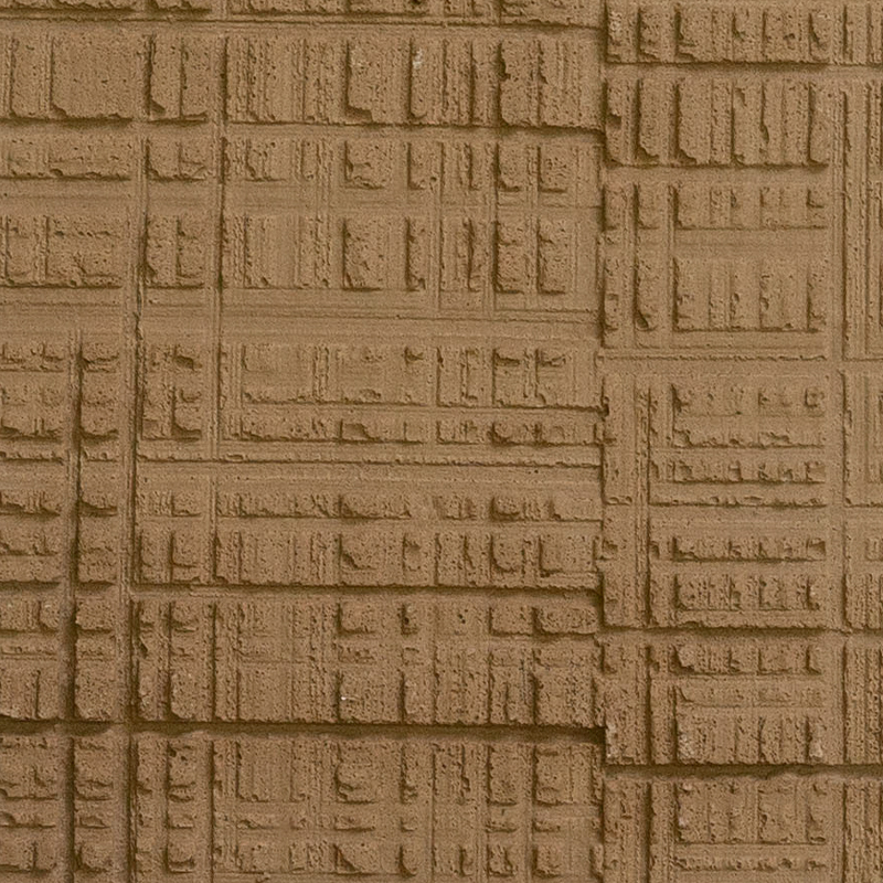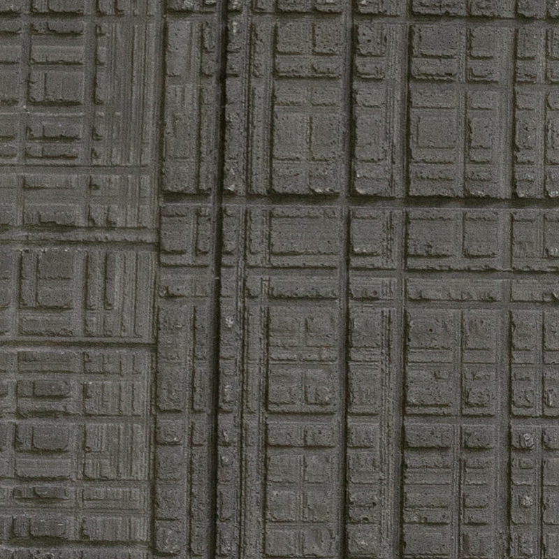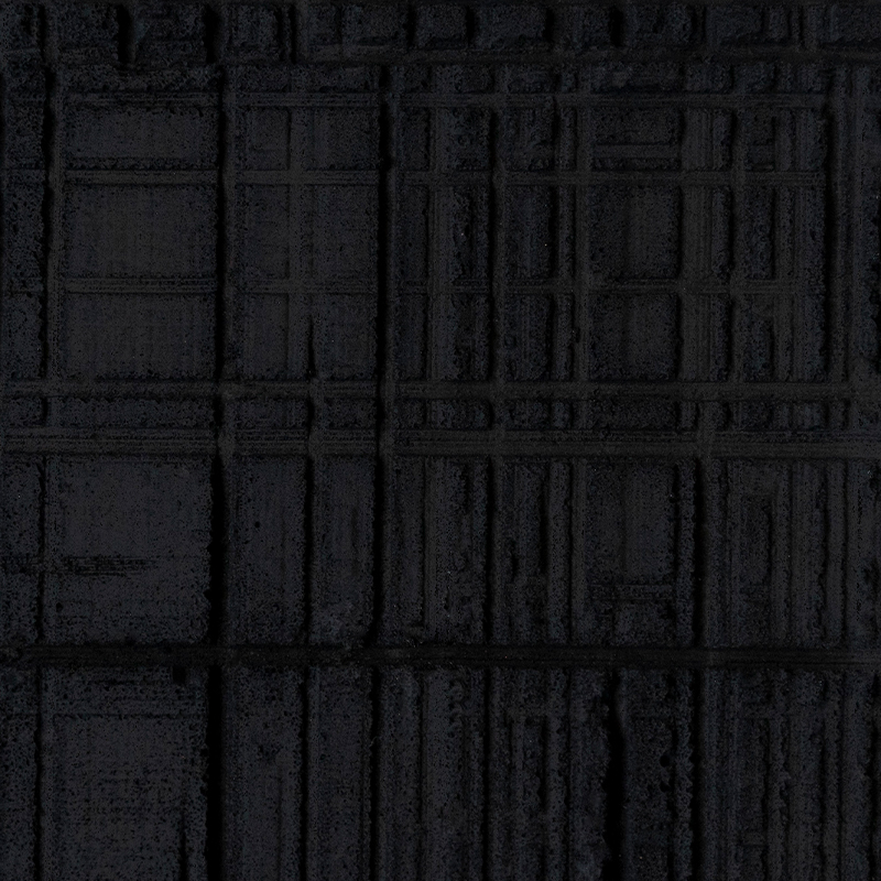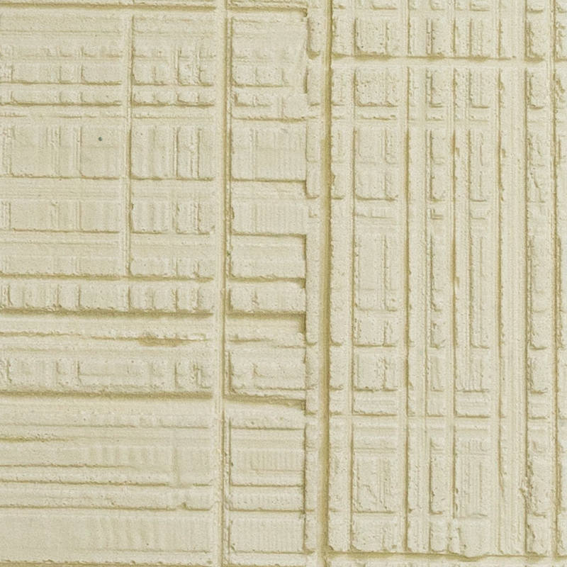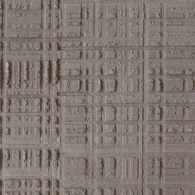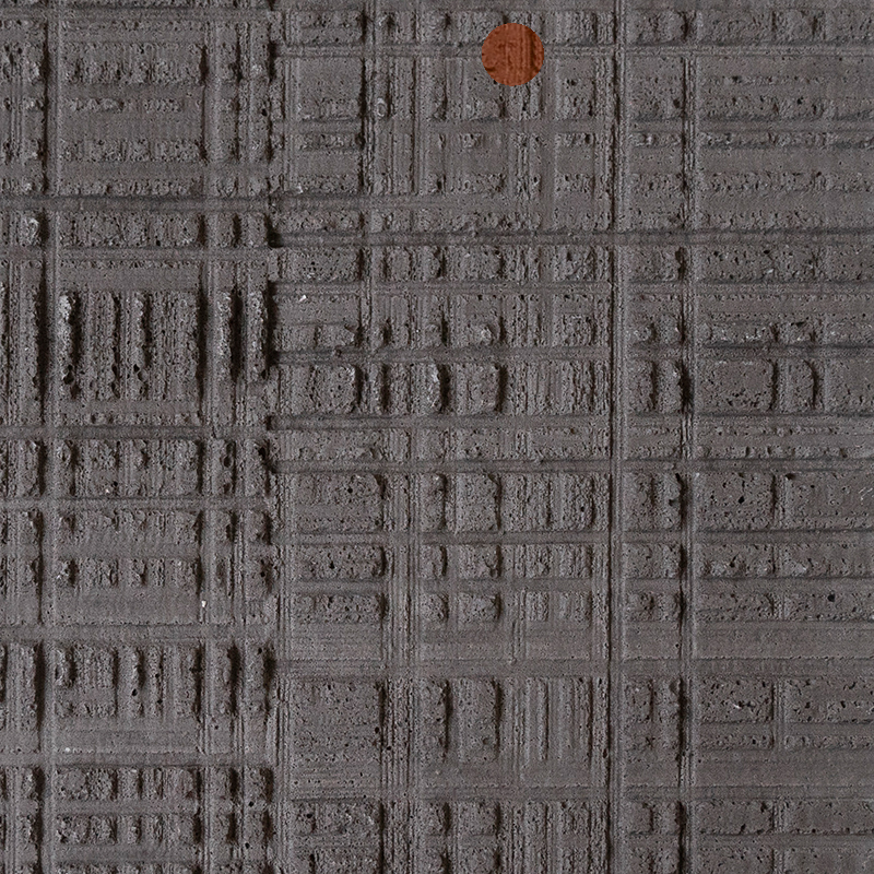 الخطوط المتقاطعة على سطح الحجر المرن لمنشار الطاولة تعيد إنتاج العلامات ذات الأعماق المتفاوتة التي يتركها منشار الطاولة عند القطع على لوح خشبي. ومن خلال عملية خاصة، يتم دمج الطبقة المعدنية الطبيعية مع مظهر الخشب ولمسته.