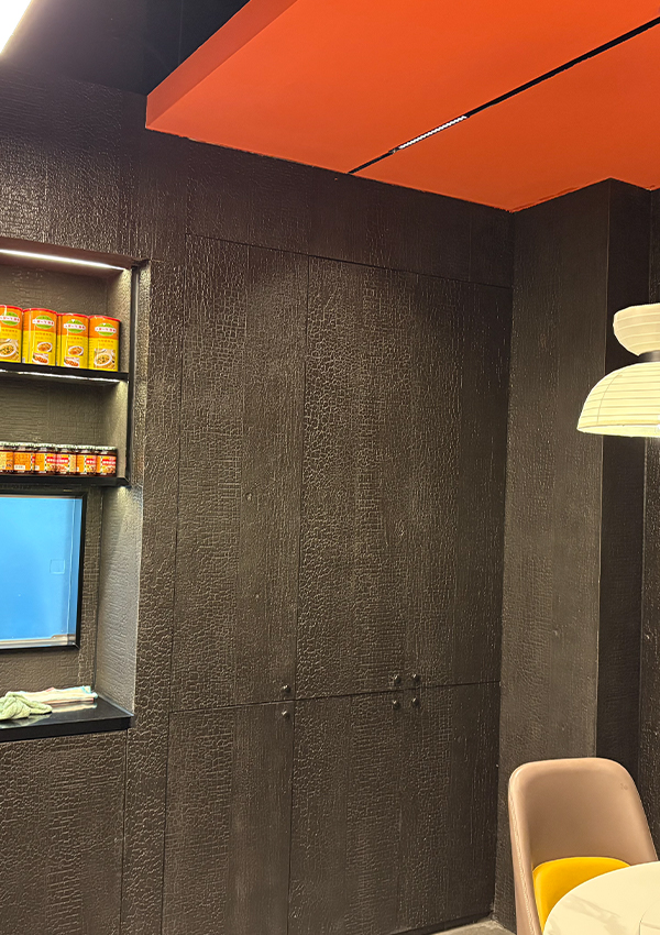 تحاكي لوحة الحائط الحجرية المرنة المصنوعة من الخشب المتفحم نسيج الخشب الذي تم تحميصه بالنار وتحويله إلى خشب الفحم. من خلال عمليات خاصة، يتم تحويل العناصر الطبيعية إلى حلول جدران خفيفة الوزن ومرنة، وهي مناسبة للترقية الجمالية والتحسين الوظيفي للمساحات الداخلية والخارجية للمباني الحديثة.