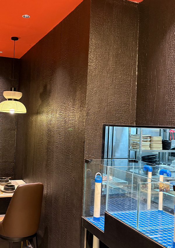 • اندماج الطبيعة والصناعة: استنادًا إلى الملمس الطبيعي للخشب المتفحم، يتم تركيب الملمس البارد للحجر لتشكيل مستوى بصري فريد، مما يوازن بين متطلبات الأسلوب من الخشونة والصقل.