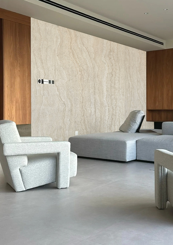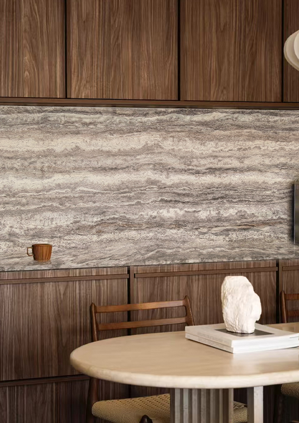 لوحة الحائط الحجرية المرنة المصنوعة من الحجر الجيري عبارة عن مادة تشطيب مرنة خفيفة الوزن يتم تشكيلها من خلال معالجة خاصة باستخدام مسحوق الحجر الطبيعي كقاعدة. فهو لا يحتفظ فقط بملمس الحجر الجيري الأصلي وخصائص الملمس، بل يتمتع أيضًا بالمرونة وسهولة البناء للمواد الحديثة، وهو مناسب لمجموعة متنوعة من المشاهد المعمارية واحتياجات التصميم الإبداعي. يمكن تقسيم سلسلة الترافرتين إلى فئتين وفقًا لملمس السطح واللون: فئة صلبة وفئة مطبوعة.